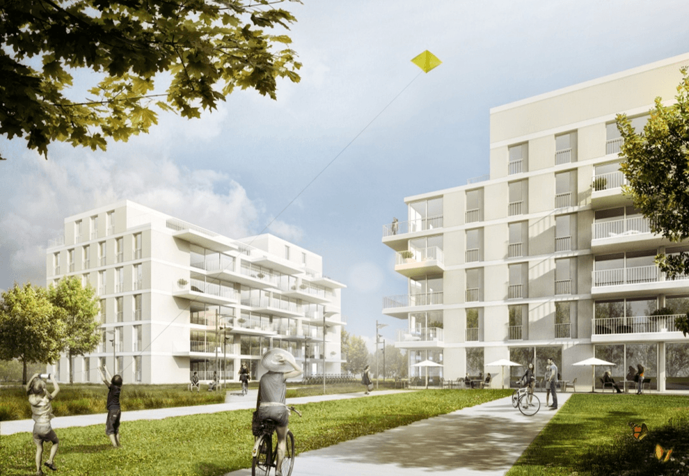 10’140 m2 de surface des parcelles (n° 168 et n° 1982), 4’840 m2 de surface SBP à Ecublens, proche de Lausanne. Le parti urbanistique a été de créer un « parc habité » dont les surfaces vertes seraient ponctuées par des bâtiments de logements et mixtes. Construction conforme au standard Minergie®